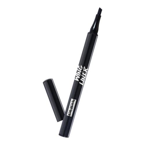 The slanted tip, with an ergonomic shape, is perfect for drawing a precise stroke along the lash line, with a perfect flick in the outer corner of the eye, in a single step.